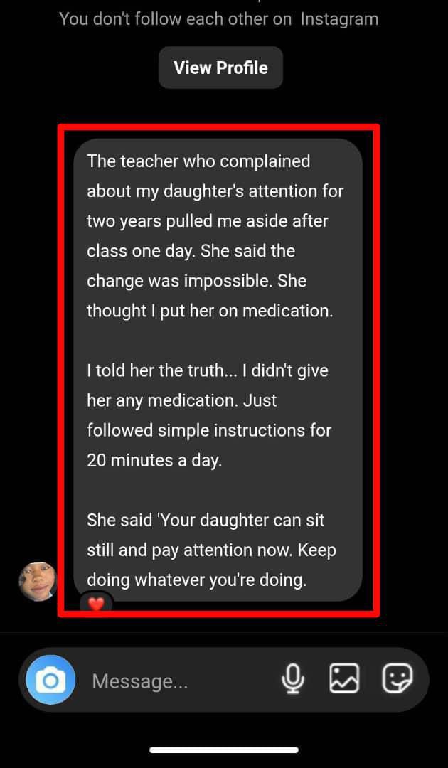 Her daughter couldn't focus on anything. She would start reading and two minutes later, she was playing with her pencil or staring at the wall.